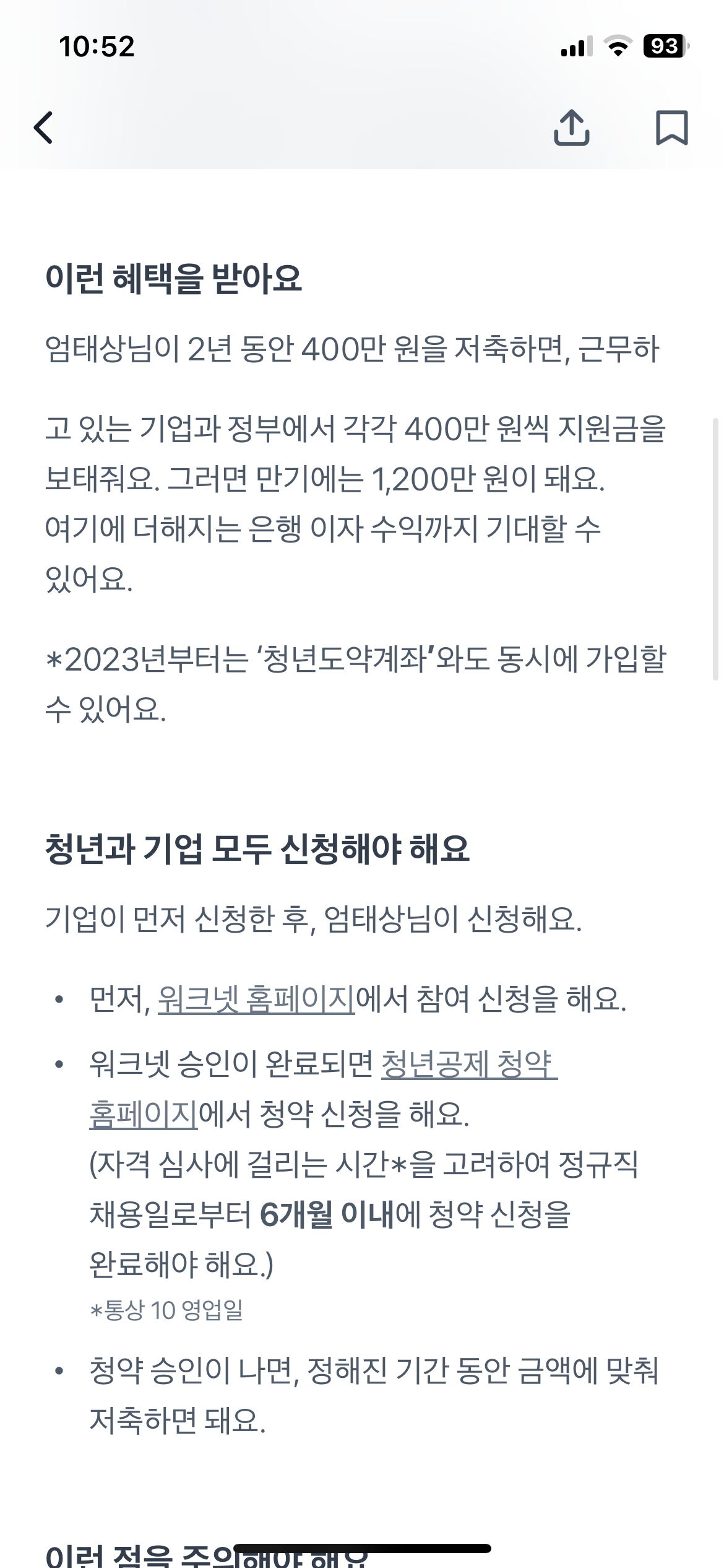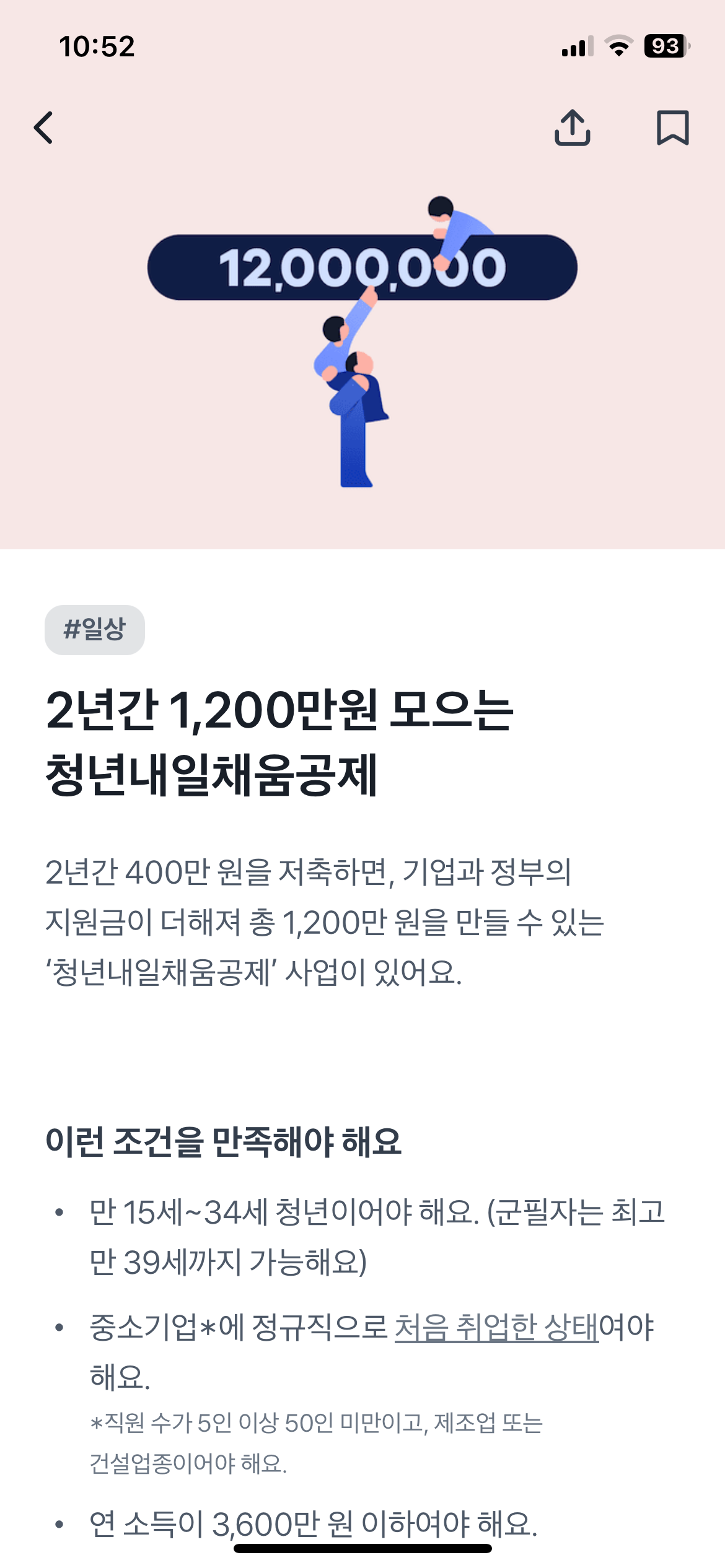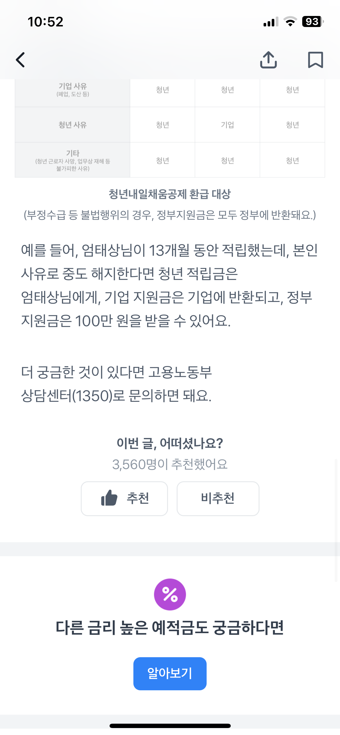 이렇게 청년들이 관심이 갈 법한 청년내일채움공제 글에 들어가니, 설명이 정말 자세하게 잘 되어 있는 것을 볼 수 있다. 또 놀랐던 것은 이렇게 아티클 마지막에 회사 광고 뿐만 아니라 이번엔 적금 관련 글에 적합한 다른 예적금 상품도 볼 수 있었다.
